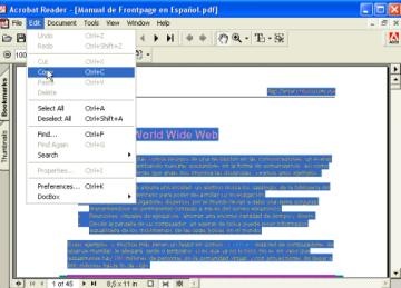 Una vez que hemos seleccionado todo el documento volvemos a pinchar sobre Edit y esta vez pinchamos sobre Copy para copiar todo el documento.