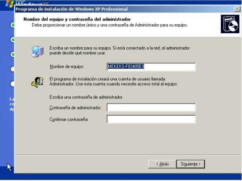Durante el proceso de Instalación de Windows apenas hay que explicar nada, habrá que poner el numero de serie del Sistema Operativo , y poco más, lo demás lo hace todo automáticamente. Solo una reseña mas, os aparecerá una pantalla como la que veréis abajo. En esta ventana se pone el nombre como se llamara vuestro equipo y si queréis poner contraseña. Si rellenáis el campo de la contraseña cada vez que arranque el ordenador tendréis que poner la contraseña para Iniciar Windows como administrador del sistema (yo os aconsejo no poner nada)